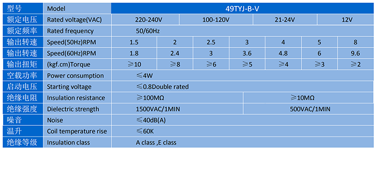 電機(jī)主要性能表 SPECIFICATION